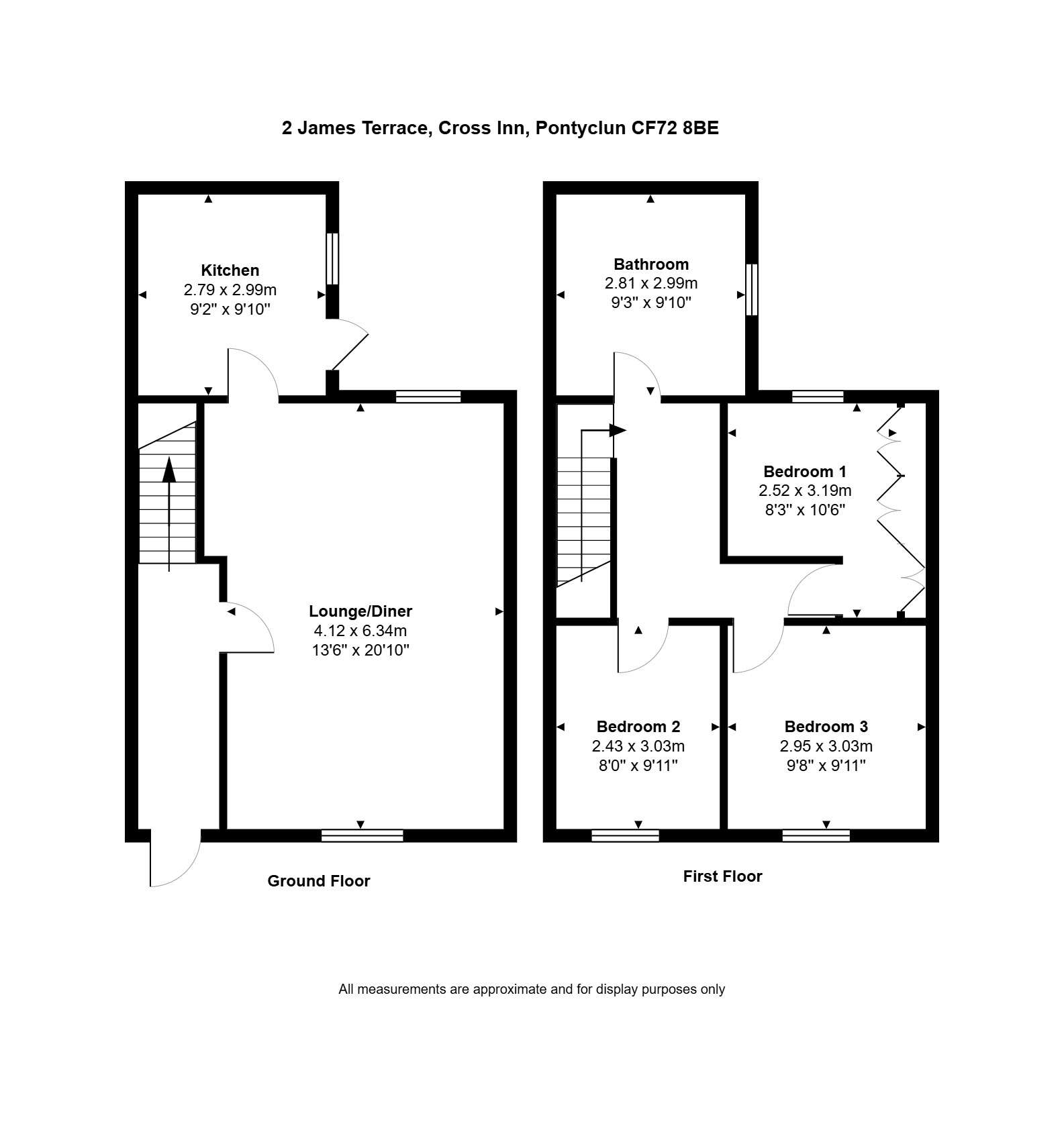 Upstairs, the property offers three well-proportioned bedrooms, all carpeted for comfort. One bedroom benefits from fitted wardrobes, providing additional storage.
