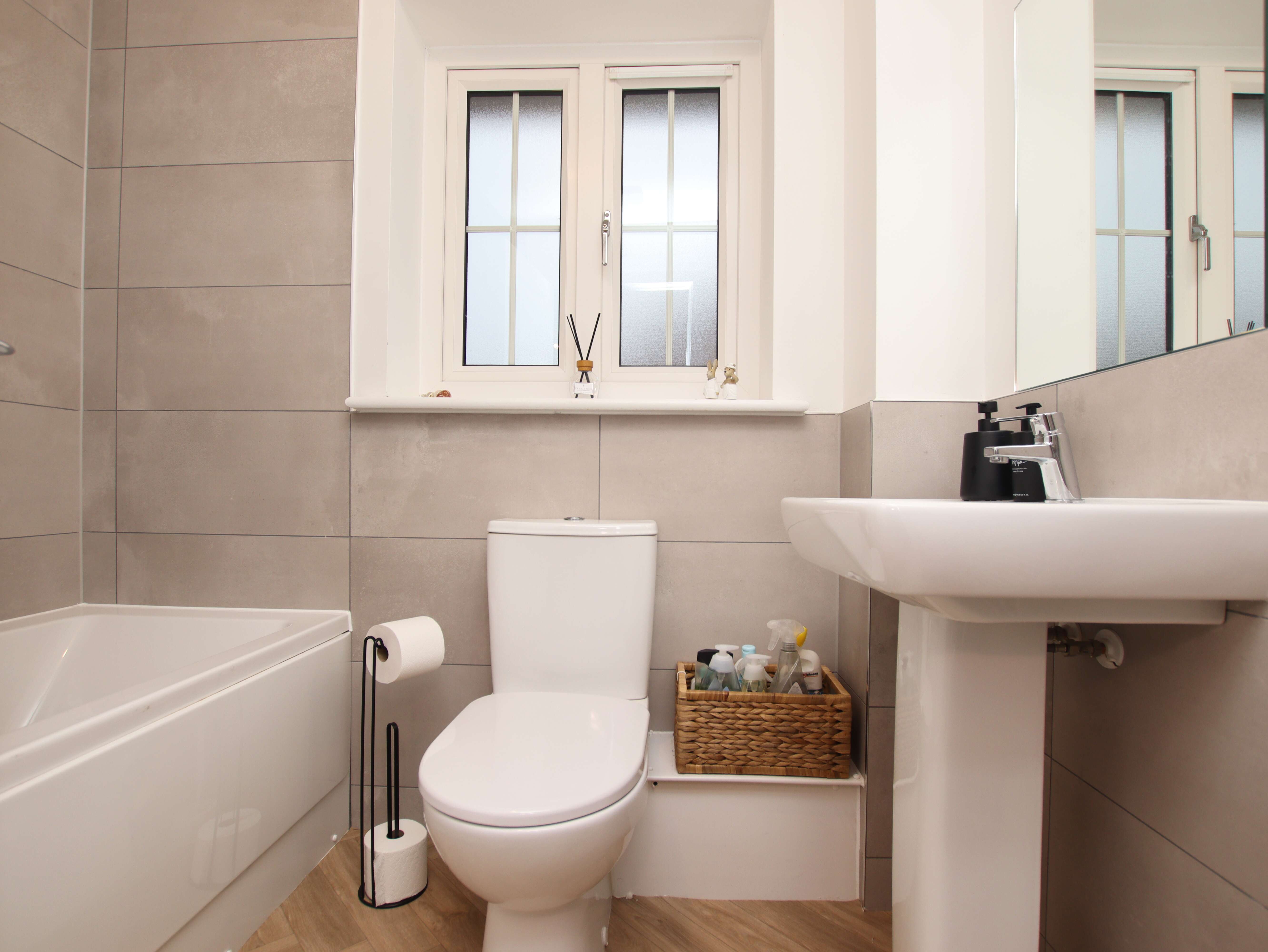 To the first floor, there are three double bedrooms. The master bedroom benefits from carpeted flooring and a modern en-suite shower room, while bedrooms two and three feature laminate flooring.