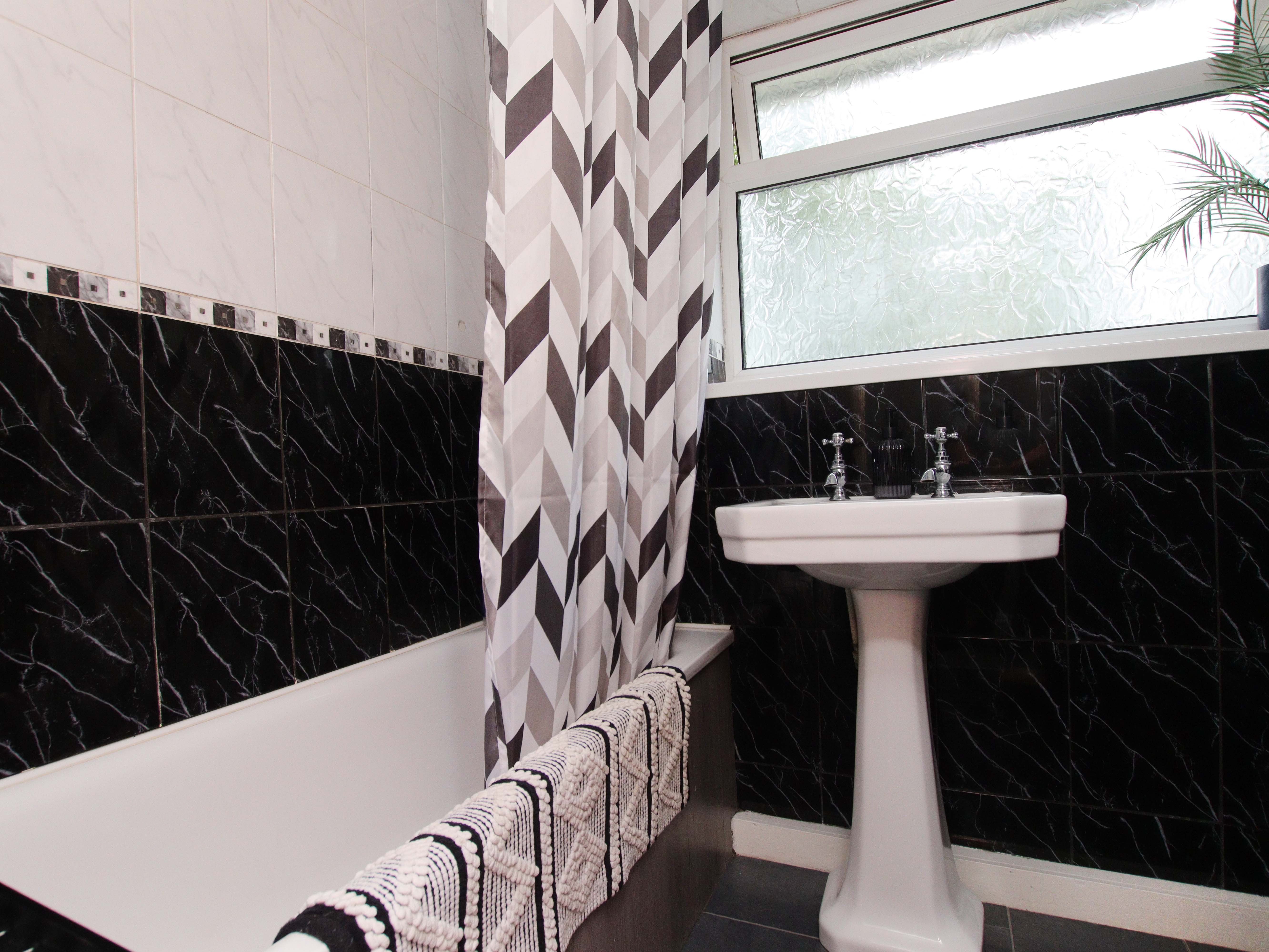 To the first floor, there are three bedrooms—all with carpeted flooring. Two of the bedrooms are spacious doubles, while the third is a generously sized single. Completing the first floor is a family bathroom with ceramic tiles on both the walls and floor, and fitted with a shower over the bath.