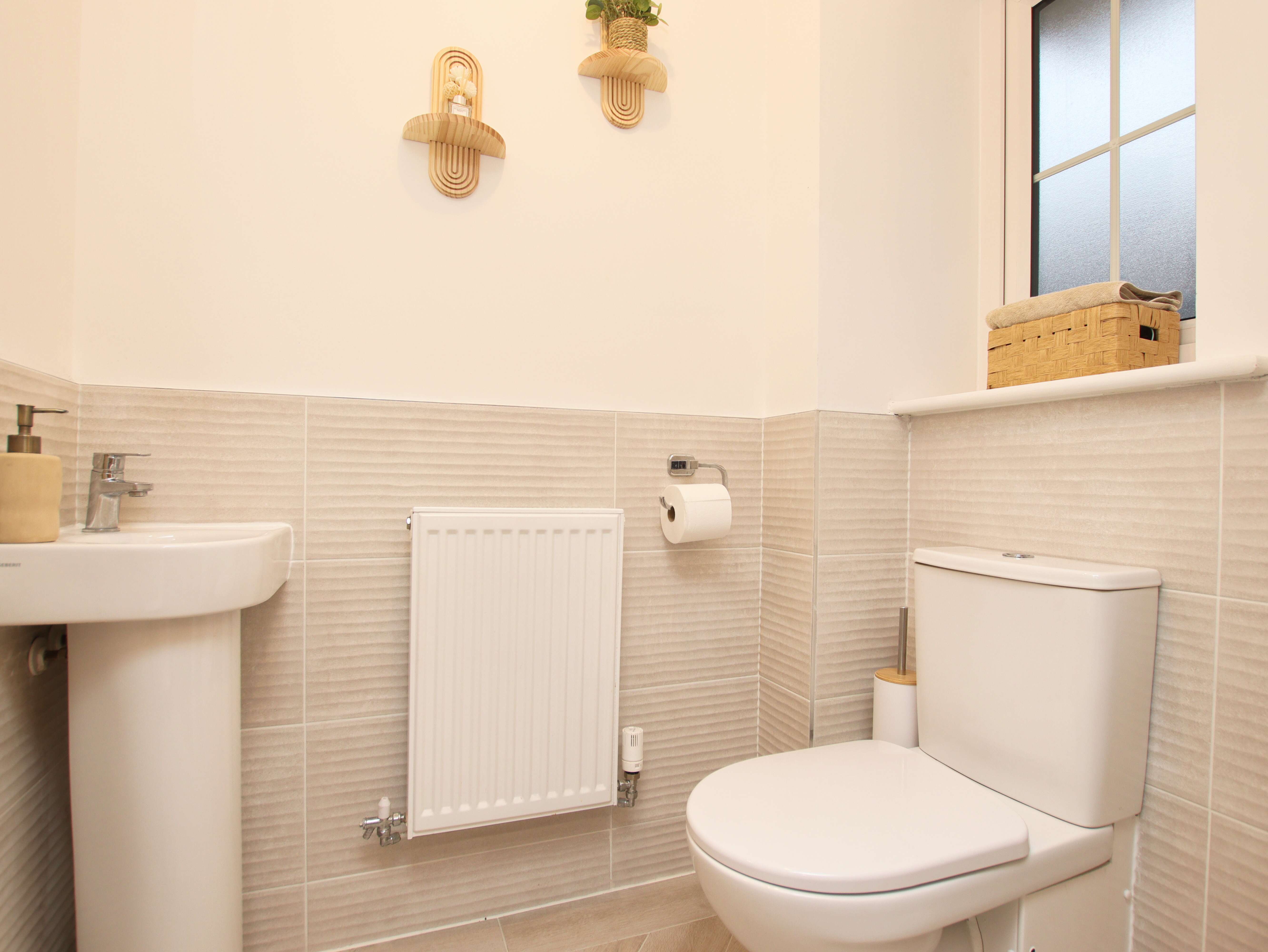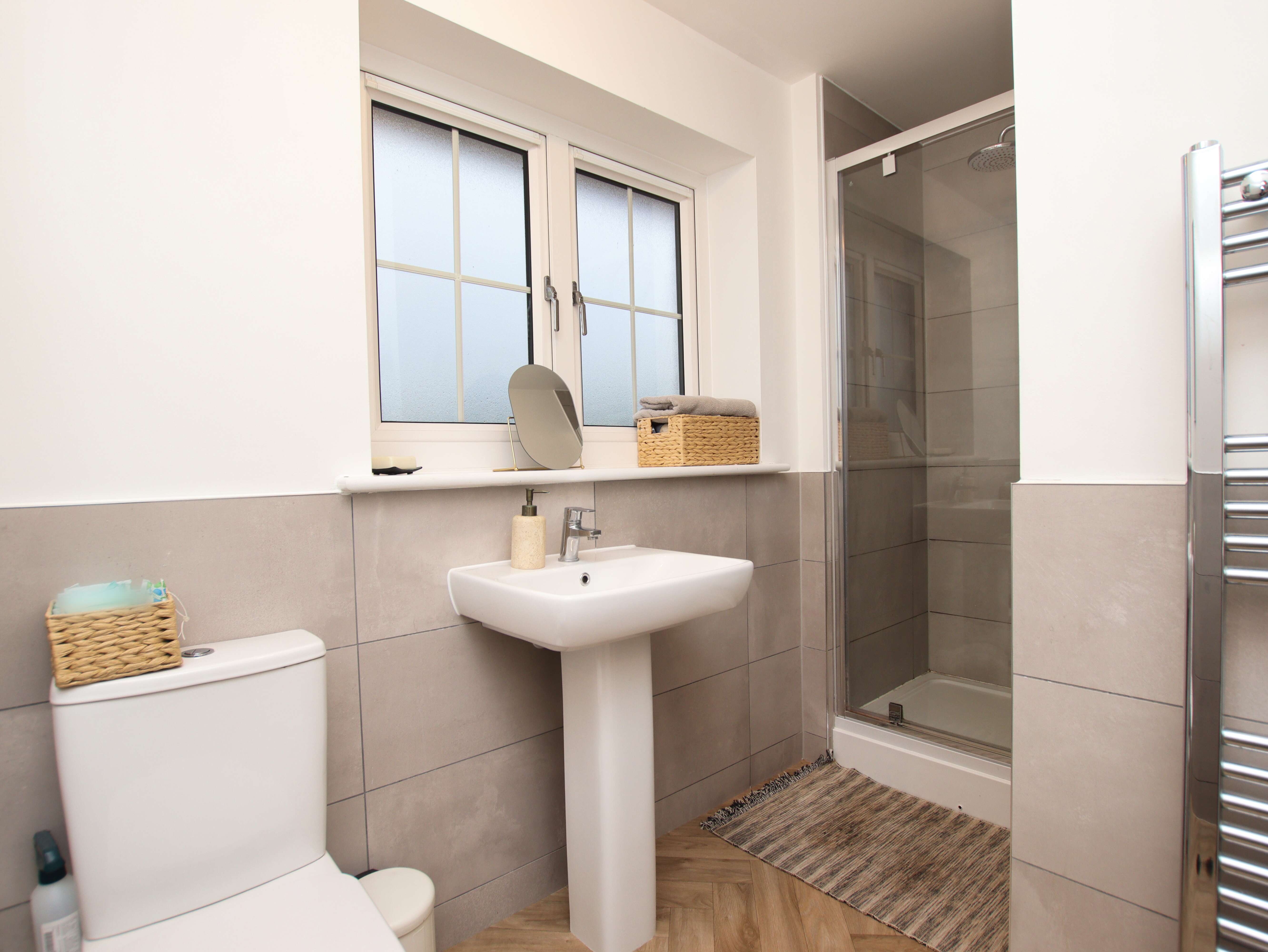 To the first floor, there are three double bedrooms. The master bedroom benefits from carpeted flooring and a modern en-suite shower room, while bedrooms two and three feature laminate flooring.