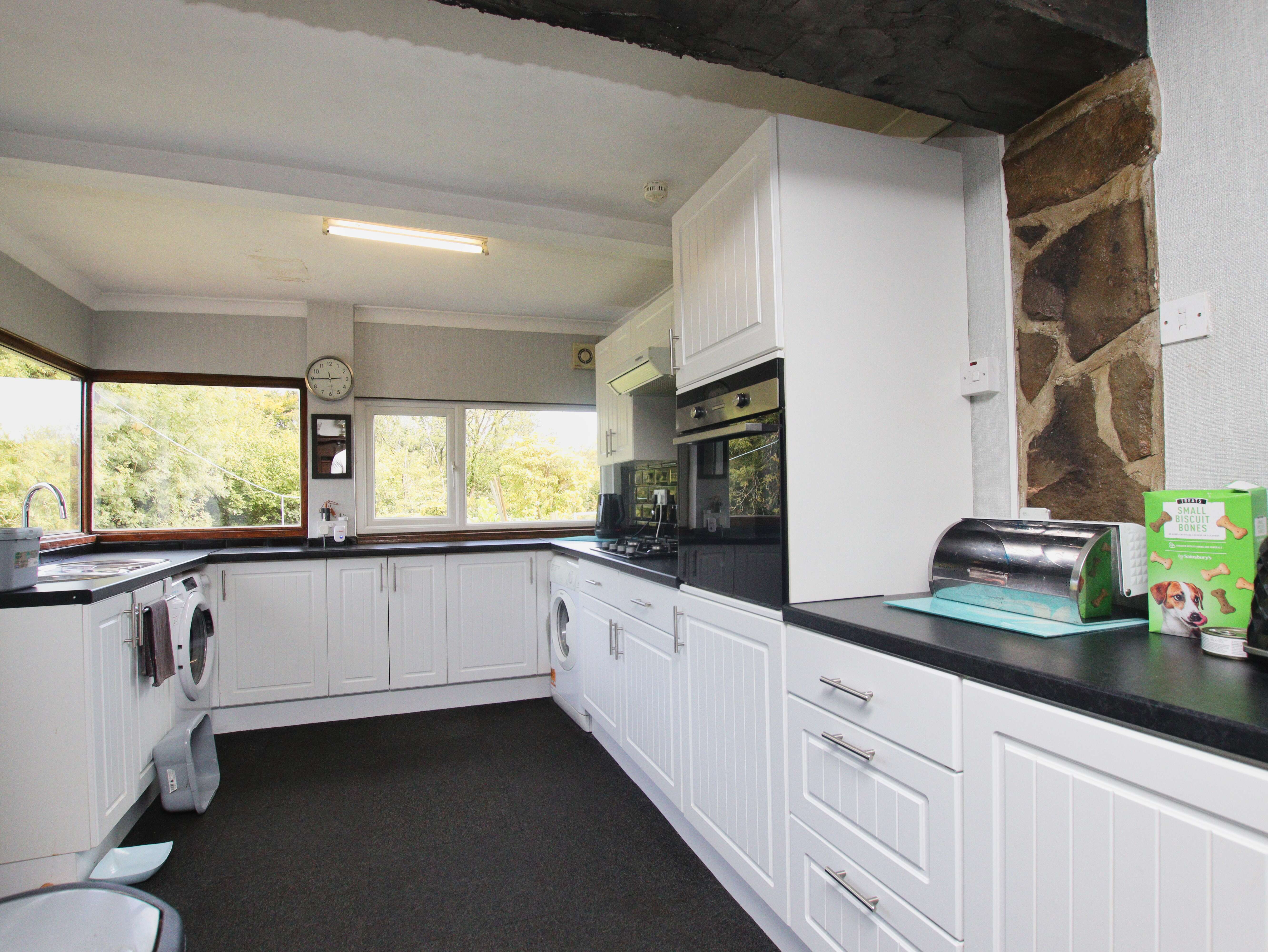 Externally, the property enjoys landscaped front and rear gardens, complemented by mature shrubs and planting to the borders. To the rear, there is a detached garage, and the home itself is pleasantly bordered by woodland, offering both privacy and a delightful outlook.